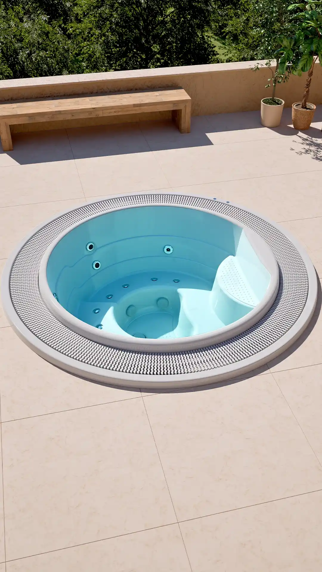 Con dimensiones compactas de 2.30 metros de diámetro, el spa Capri se adapta perfectamente a diversos entornos, desde establecimientos comerciales centrados en el bienestar hasta hogares residenciales que buscan un jacuzzi de calidad profesional. Sus dos pulsadores piezoeléctricos ofrecen un control fácil y cómodo del masaje, mientras que los jets y boquillas inoxidables añaden un toque de elegancia y durabilidad al producto.